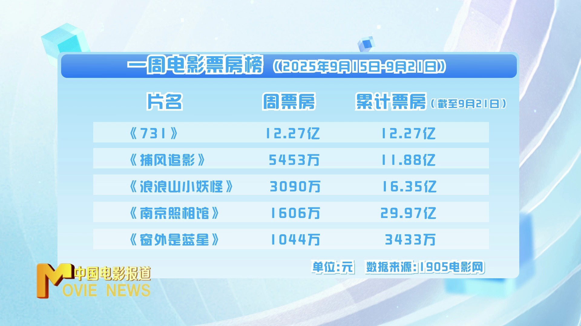 一周电影大数据上周影市收获票房13.99亿元