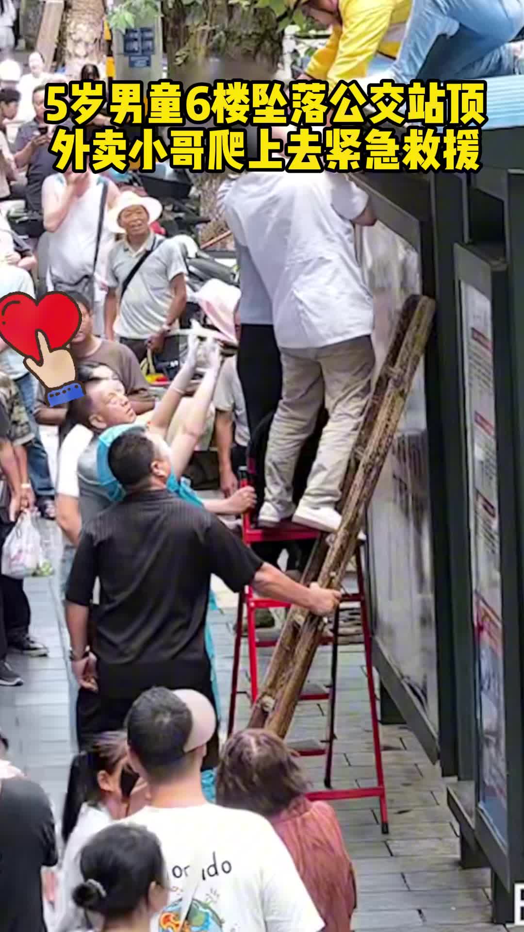 男童从6楼坠落至公交站顶棚 外卖员徒手爬棚紧急救援