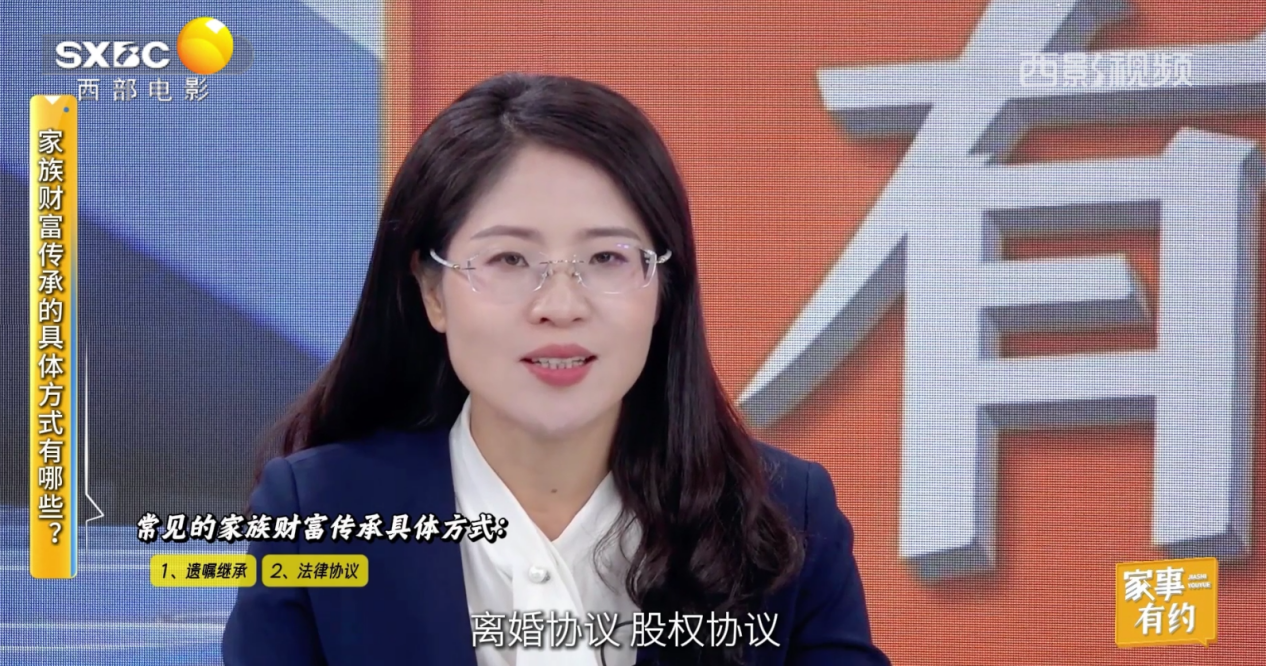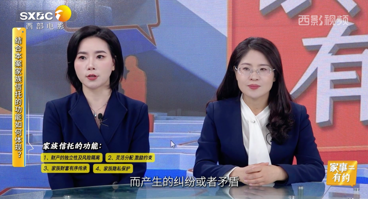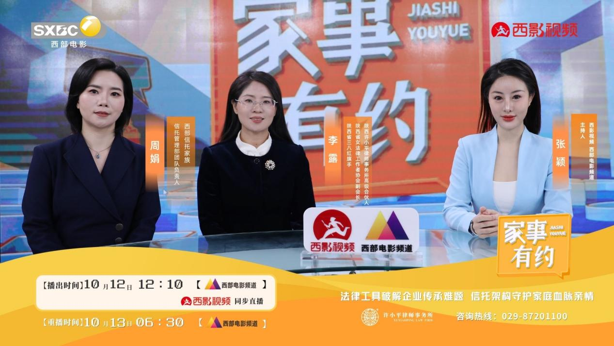 由西影传媒主办聚焦婚姻家事融媒体普法访谈栏目《家事有约》第二季,由陕西许小平律师事务所特约播出。本期节目以“法律工具破解企业传承难题,信托架构守护家庭血脉亲情”为主题,特别邀请陕西许小平律师事务所高级合伙人、陕西省三八红旗手、陕西省女法律工作协会副会长李露、西部信托家族信托管理部团队负责人周娟做客演播室以案说法。