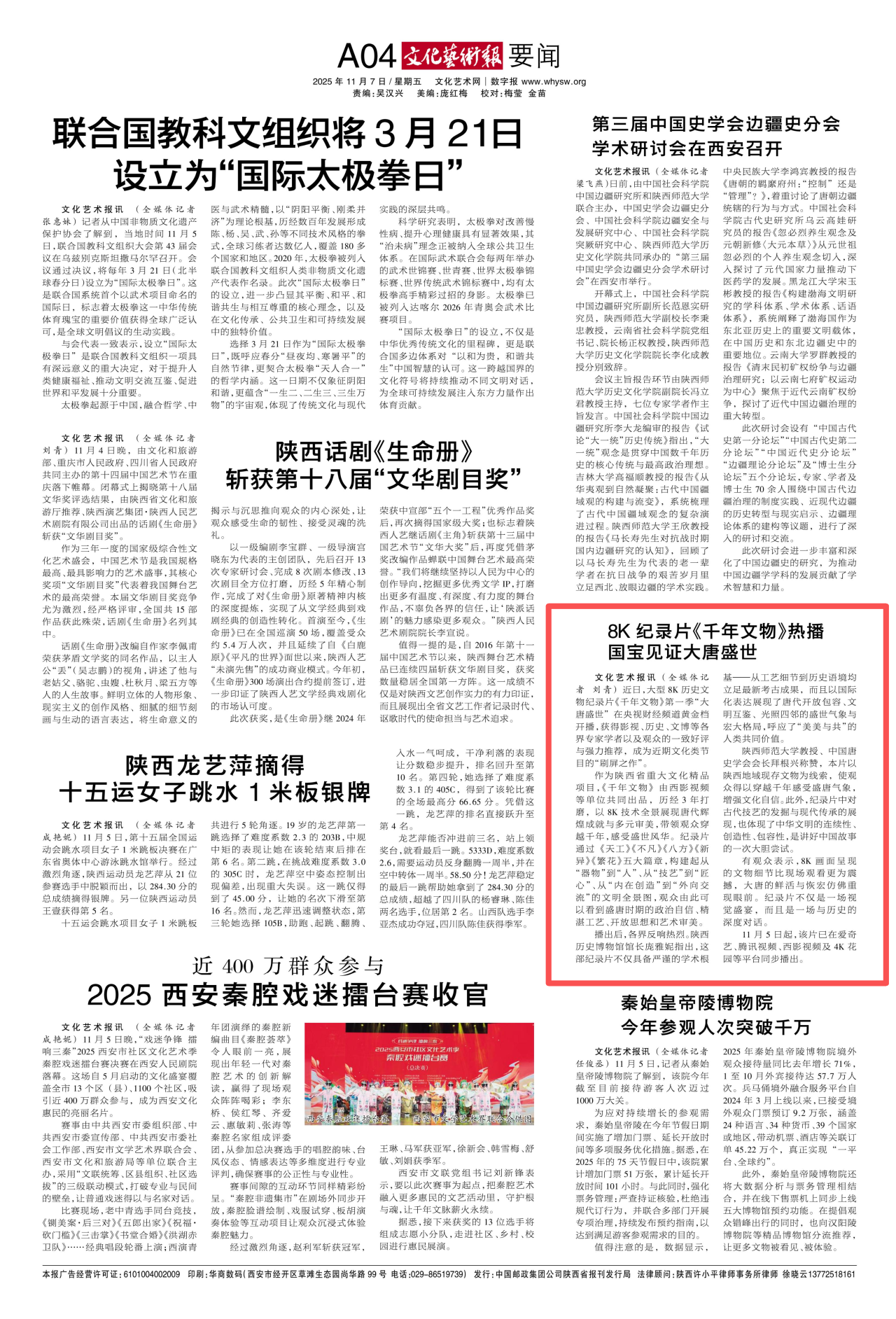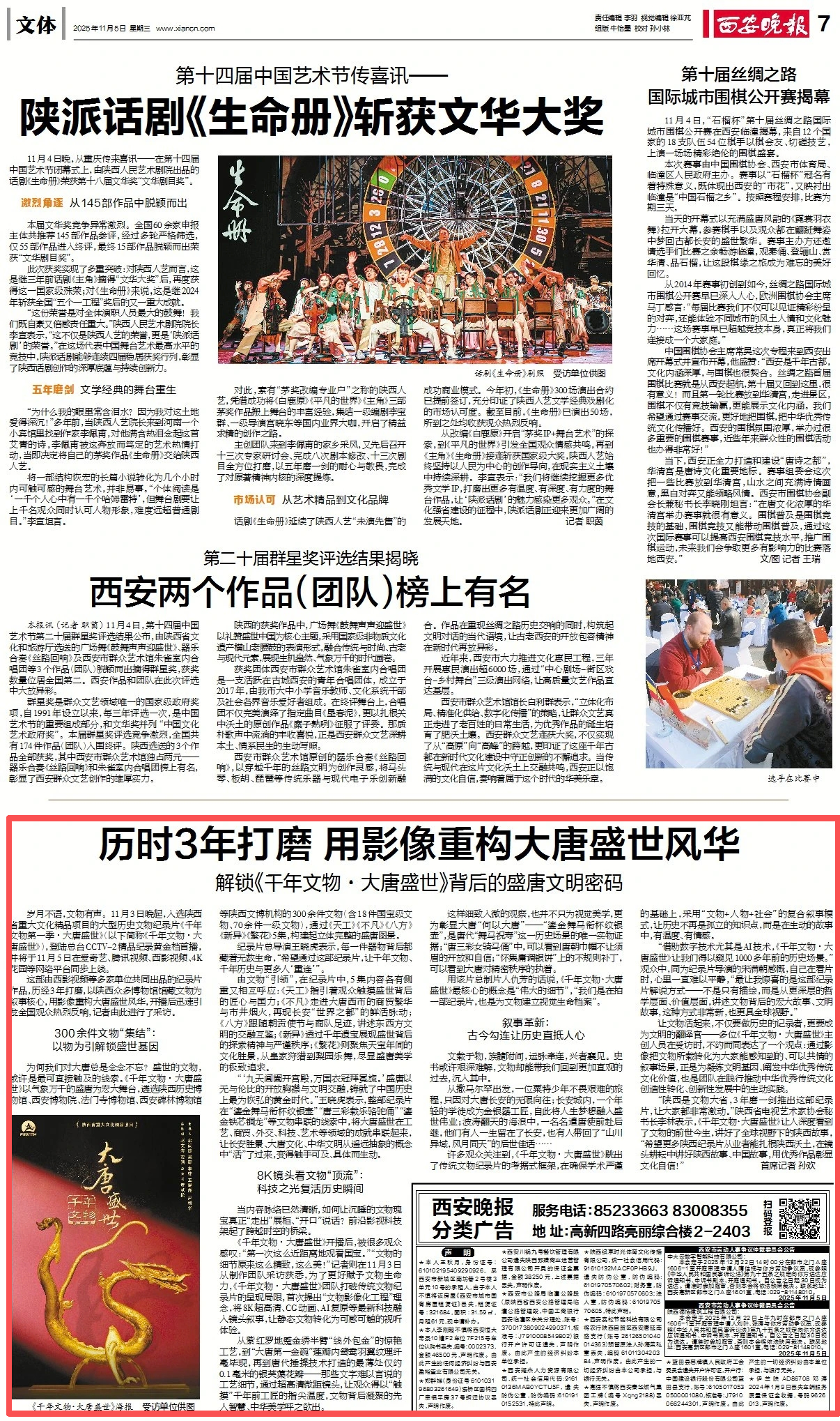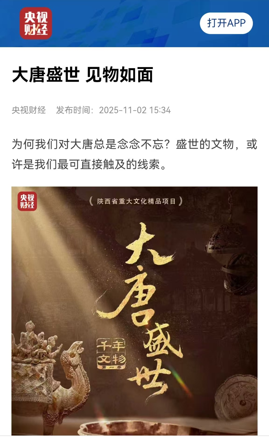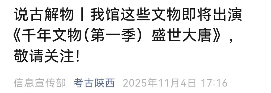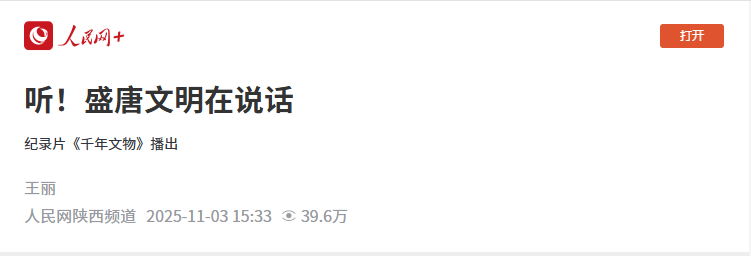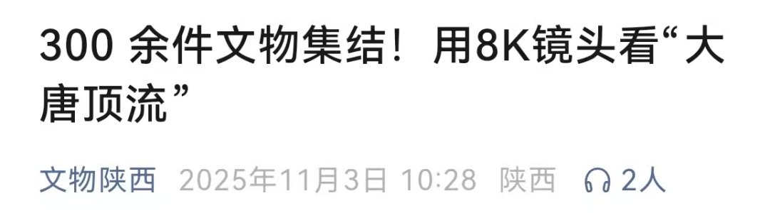 《千年文物·大唐盛世》致力于构建“纪录片+”文化新生态,以“数字互动—线下体验—社交传播”的闭环模式,为传统文化传播提供了“活化”样本,也为文博领域的创新发展探索出可复制的实践路径。目前,该纪录片已登陆爱奇艺、腾讯视频、西影视频、4K花园等网络平台,继续带您沉浸感受那个开放包容、气象万千的大唐盛世。