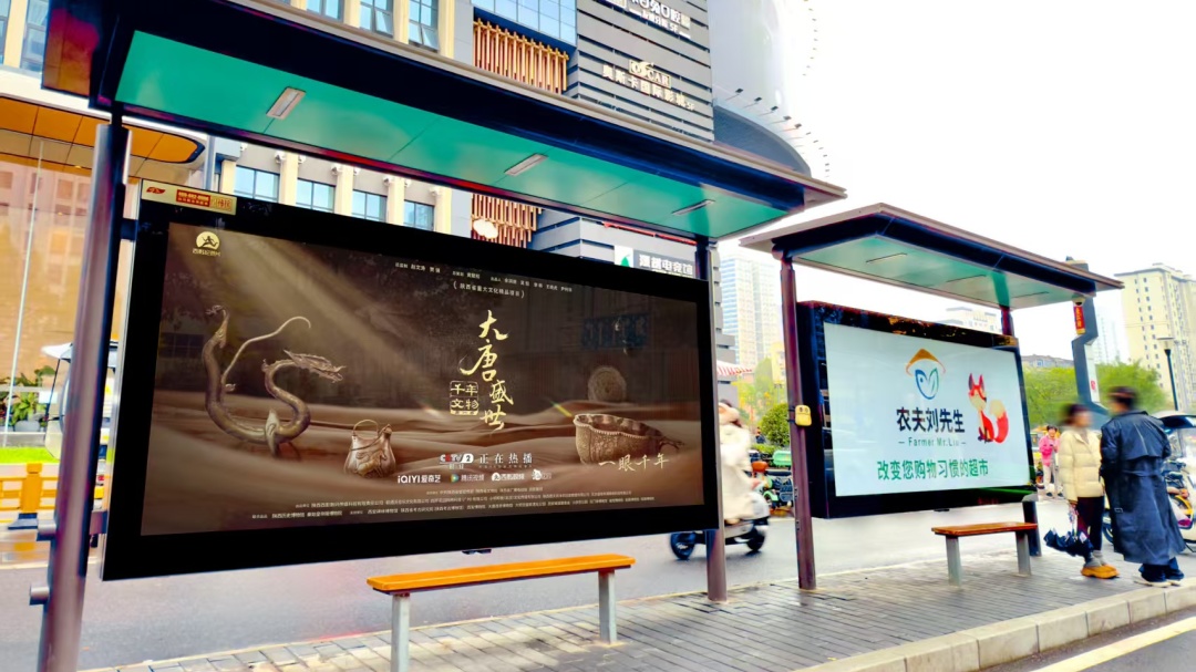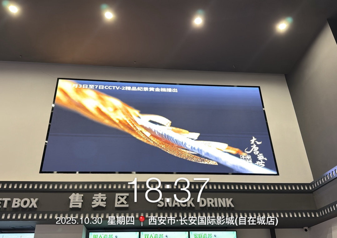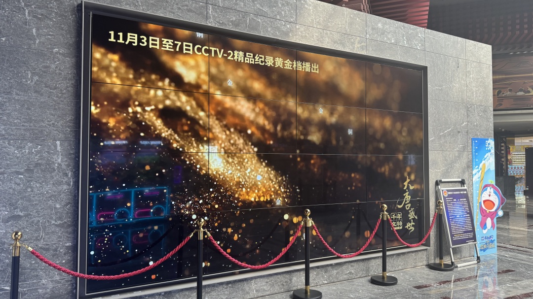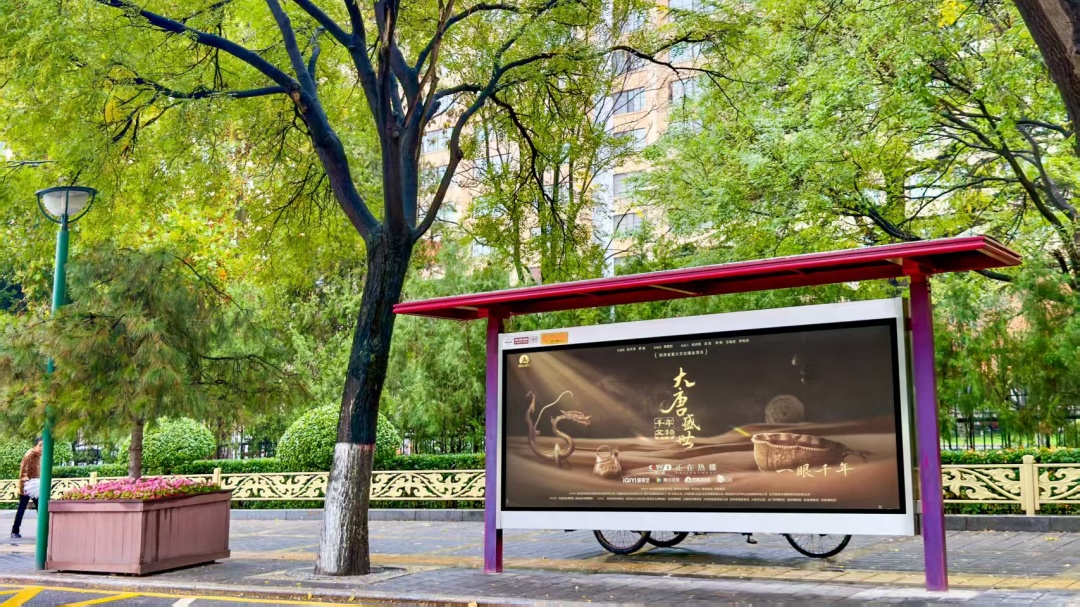 《千年文物・大唐盛世》以‘纪录片 +’为核心,在线下开展一系列丰富多彩的宣传推广及联动活动,覆盖商业空间、交通出行、数字生活、日常出行等多元场景,探索出纪录片与多元领域融合发展的新模式。在商业空间方面,西安王府井百货、广州北京路8K春天、广州白云之心等城市地标商圈的大屏联动展播每日循环播放预告片。核心商圈近千块影院大屏以宣传片、映前广告的形式同步播出预告,实现文化场景与商业空间的创新融合。
