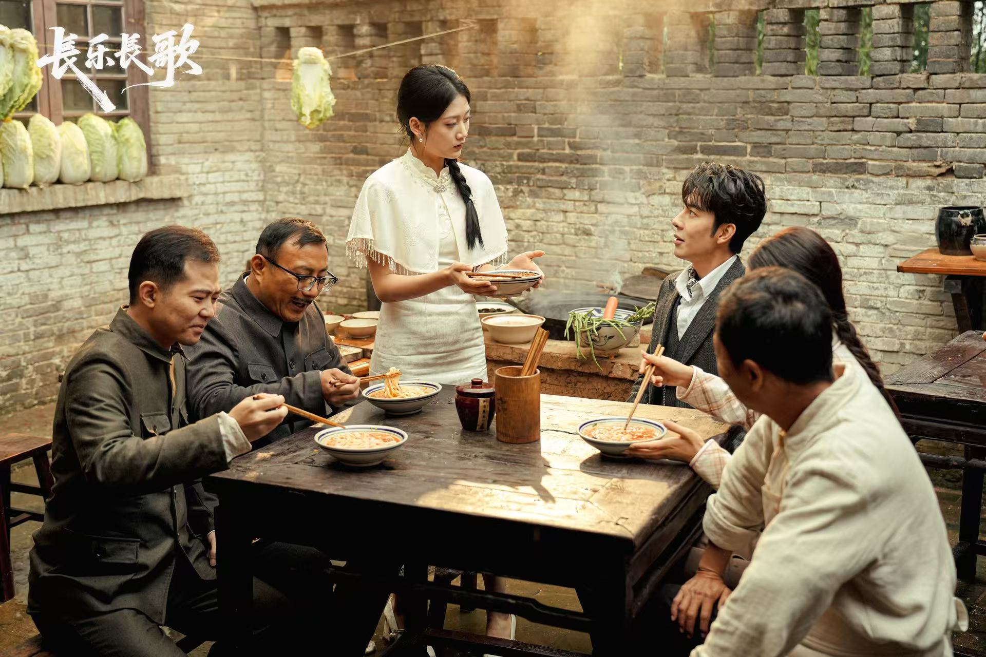 自开机以来,《长乐长歌》剧组深入陕西宝鸡多地取景,以真实窑洞工厂、老式火车头等历史遗存为核心场景,生动再现了大后方抗战工业故事。拍摄过程中,创作团队将地方非遗与饮食文化融入场景,凤翔泥塑参与布景,岐山臊子面、豆花泡馍先后入镜。更借助AIGC等前沿数字技术精准复原窑洞工厂内部、“宜昌大撤退”等关键历史场景,厚重的工业遗址、鲜活的民间艺术、地方美食交相辉映,赋予作品独特的艺术生命力与传播价值。
