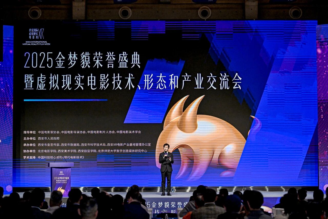 10月22日,2025金梦貘荣誉盛典在西安XR电影产业基地举办,来自全球优秀虚拟现实电影集中展示交流。国家、省市有关部门、行业嘉宾、技术专家、高校学者及影视爱好者参加。