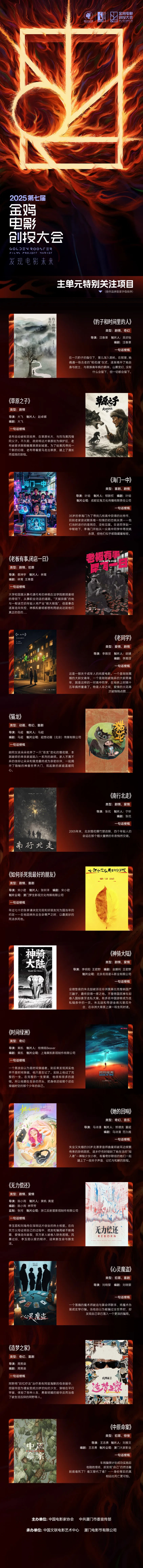 2025年第七届金鸡电影创投大会将于11月11日至11月15日在厦门举办主单元、科幻片单元、制作中项目单元终极路演、一对一洽谈、推介仪式等活动。