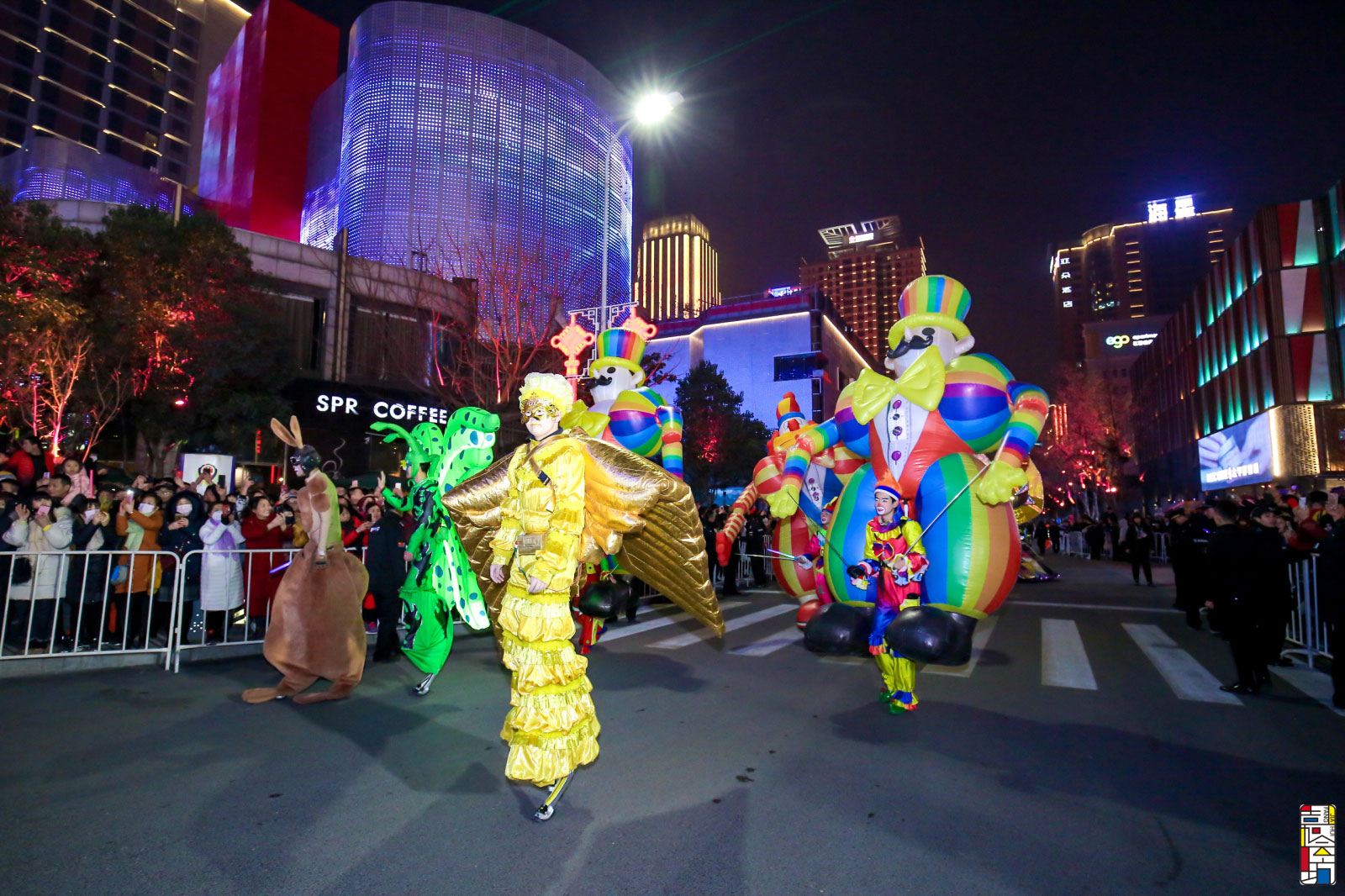 西班牙安卡巨鸟翼展达8米,扇动翅膀可以飞升至9~10米高处,它在西文中代表着尊贵、永生,寓意吉祥。水晶女王花车整体由晶莹剔透的水晶打造成锋利的棱柱形,呈现出硬朗的质感。它的创作灵感来自冰雪女王的奇异世界。她是象征勇气的女王,预示着蓬勃的希望之光,只要坚持信念,就能到达彼岸。在创业咖啡街区内的巡游活动中,杂耍小丑、气模小丑、熊猫人偶等跟随着音乐派发气球,跟市民互动拍照合影。